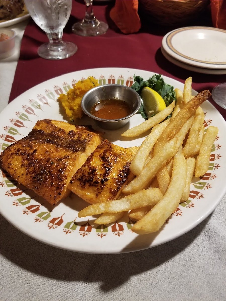 Everything was absolutely amazing. The bacon wrapped scallops and clam chowder were some of the best we’ve ever had. All of the entrees were equally delicious. And our waitress, I think her name was Helen, was so kind and attentive. Service was a little on the slower side due to the table side accommodations, but I personally enjoyed it as it gave us more time between courses. So glad we stumbled upon this place!